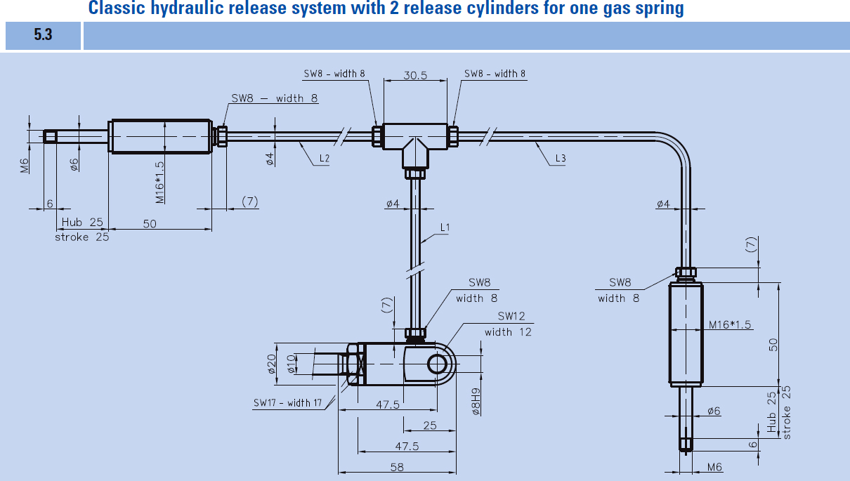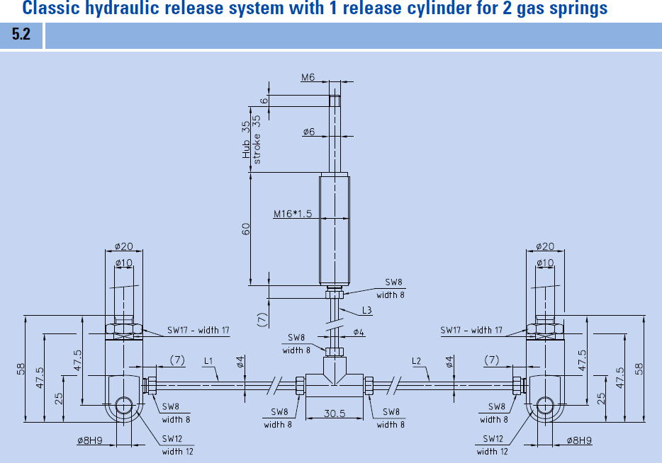 安定した力が伝わる油圧プリングを操作式ケーブルの特性を活かして、1つのボタンで2本のガススプリングを操作する分岐ユニットや2つのボタンで1本のガススする分岐ユニットをご用意しています。1本のガススプリング操作するためのボタンを、常に使い易く見やすい場所に配置することによって、ユニバーサルデザイン化を実現します。