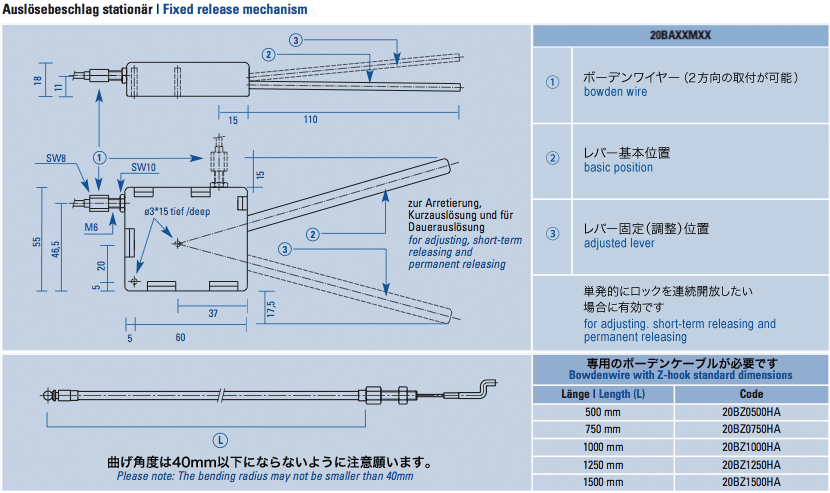 フィックスリリース(固定可能ボーデンワイヤー操作ユニット)
