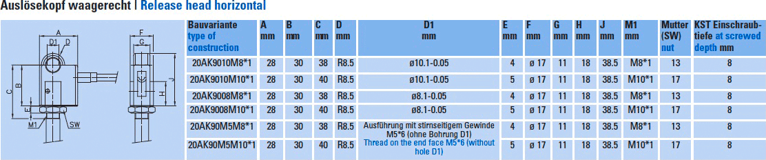 - ご入用のガススプリングのロッド径と、下図のM1部分が合致するリリースヘッドを選択してください。